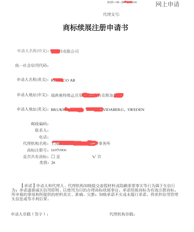 This is a real China trademark renewal case for a Swedish company.